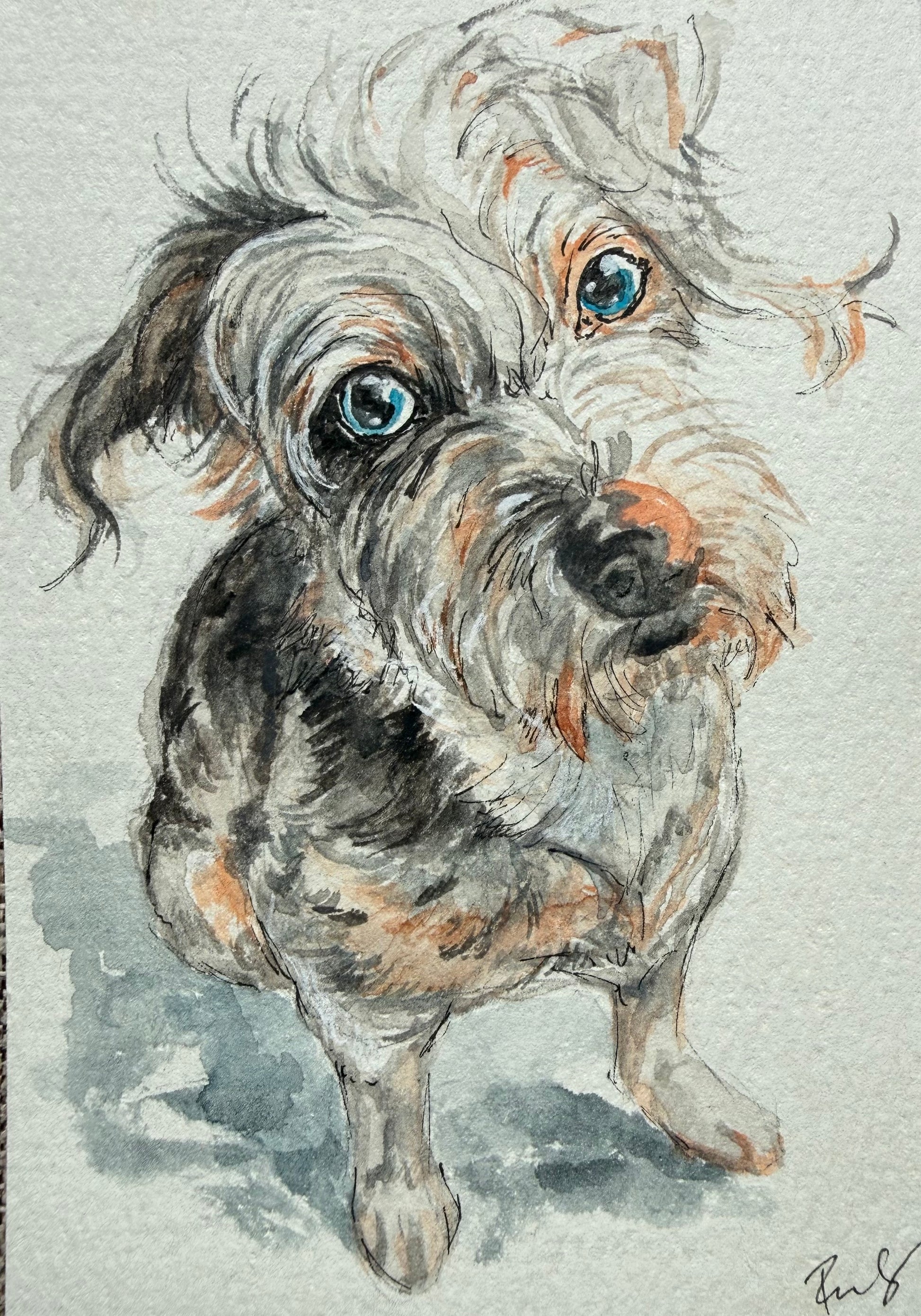 Hand-painted, never AI. Watercolor pet portrait commissions honoring the animals who shape our lives.